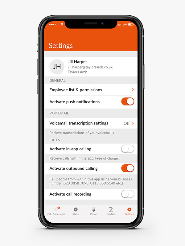 4. You can turn in-app calling on and off at any time, simply return to this page and tap the toggle – just remember, you’ll need to set your status to transfer calls to your mobile for this to work