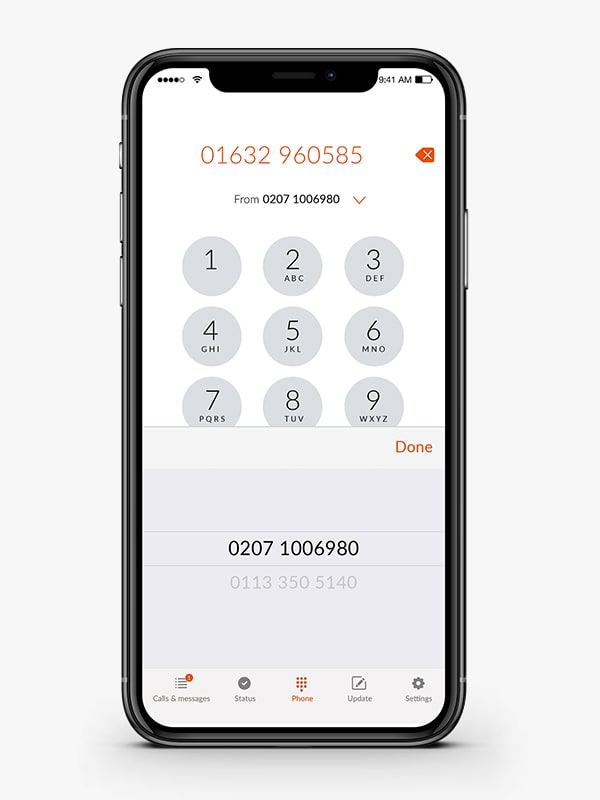 2. Select the business number you wish to make a call from using the drop-down, then tap ‘Done’ (if you have more than one business number, these will all show here)