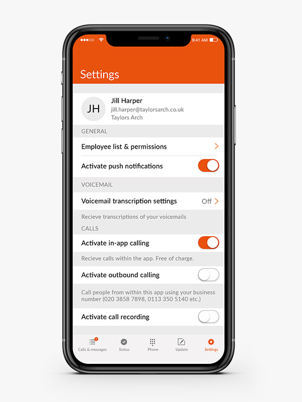 The Moneypenny app offers an outbound calling feature, allowing users to make calls from their business number on a mobile device. Keep your personal number private and give a professional impression every time you make a call, no matter where you are.
