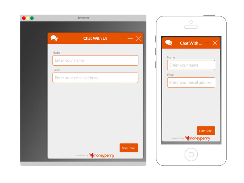 These are the live chat buttons your customers will see on your website. You can choose from different fonts, colours, positions, icons and even images.